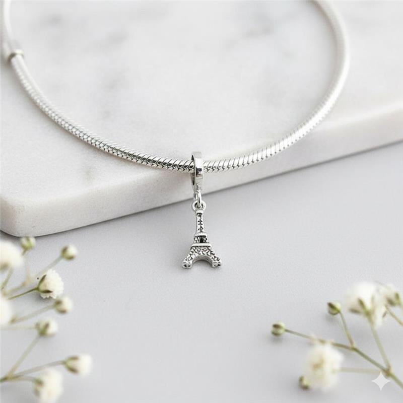 Berloque Prata 925 legítima em bali. Torre Eiffel cravejada. Berloque pendurado com base cravejada em pedra zircônia.*Foto com demais produtos apenas como sugestão do uso de peças para compor mix.