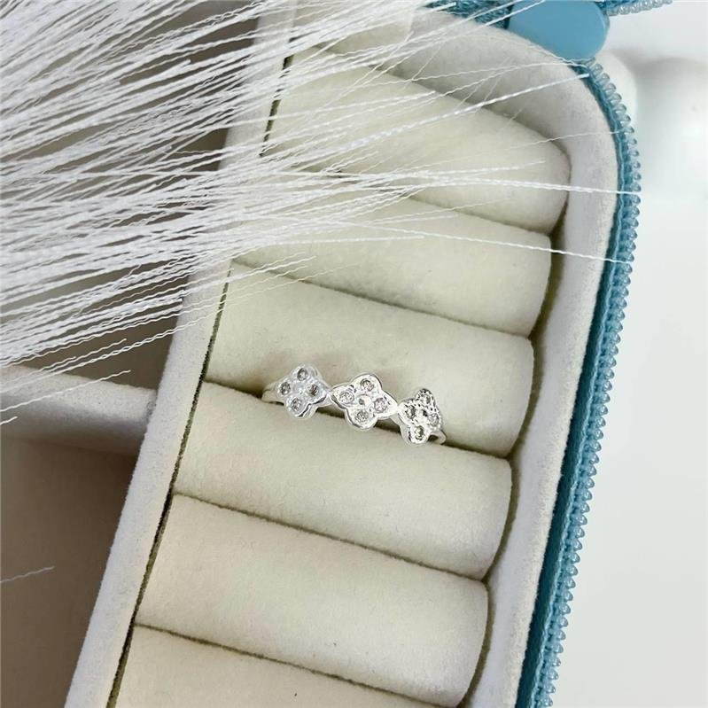 Anel Prata 925 com três trevos no centro cravejados com zircônias.Medidas: