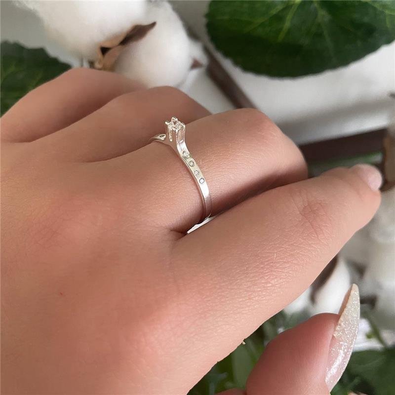 Anel prata 925 legítima noivado solitário com pedra zircônia na prata branca cravejado com 4 microzircônias na lateral. Confeccionado em Prata 925.Medidas: