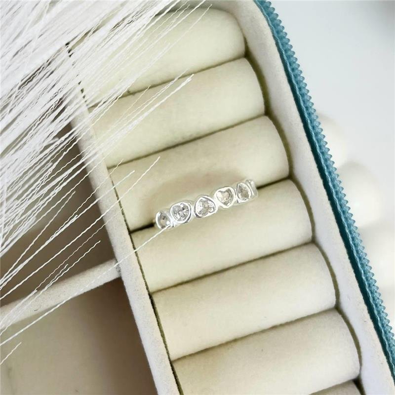 Anel em prata 925 com sete corações cravejadas com zircônias .Medidas: