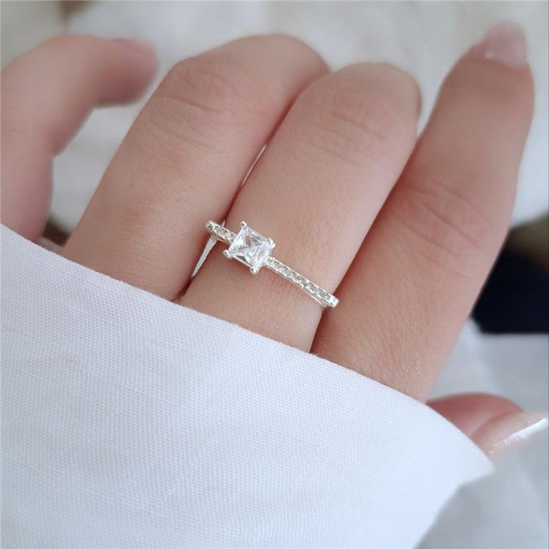 Anel Prata 925 Aliancinha base reta cravejada com uma Zirconia quadrada na lateral direita.Medida:
