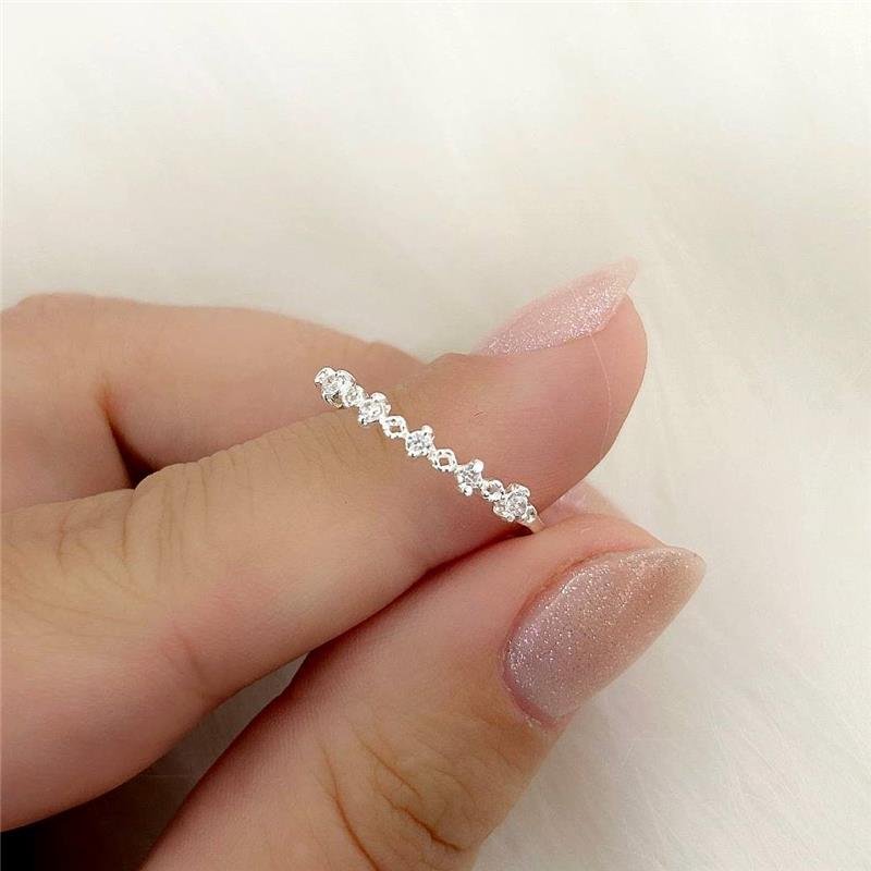 Anel prata 925 fino com espaço vazado ente as pedras de zircônias. Apresentamos com graciosidade o nosso deslumbrante Anel Solitário, uma verdadeira obra-prima que encapsula a beleza e a singularidade do amor. No centro deste anel, uma resplandecente pedra de zircônia brilha com um brilho intenso e cativante, capturando a luz e refletindo-a de maneira magnífica. Emoldurada por um delicado aro de metal, esta pedra preciosa é o ponto focal que irradia elegância e sofisticação.Medidas: