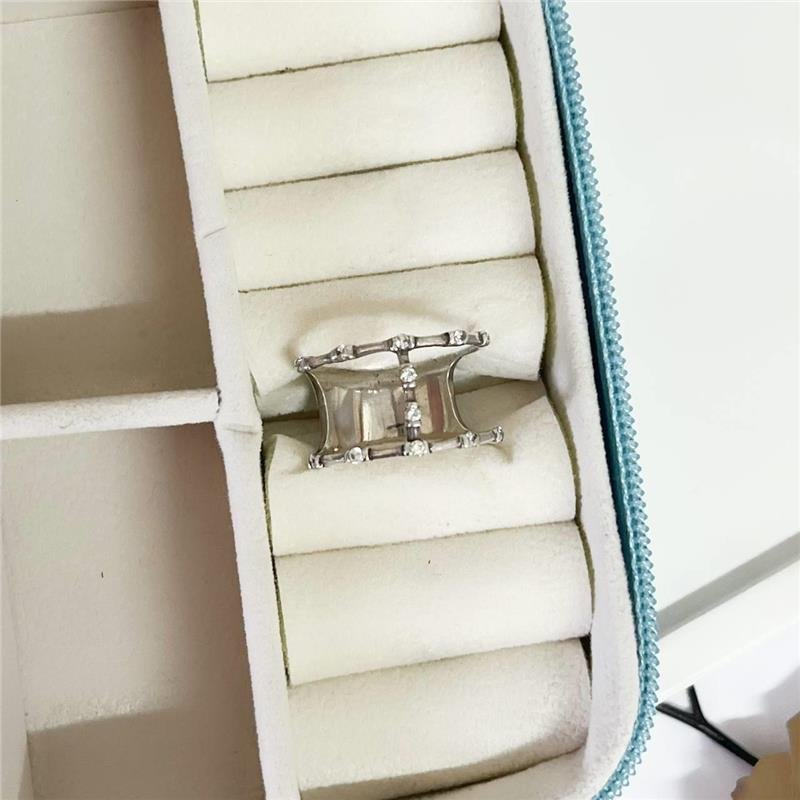 Anel em prata 925 legítima duplo, linhas cravejadas vazadas com microzircônias espaçadas e linha vertical no meio. Aro grosso.Medidas: