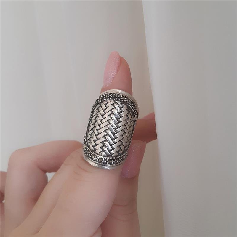 Anel Prata 925 legítima em bali. Boho, formato oval, com meio trabalhado estilo trançado e bordas trabalhadas e cravejadas de marcassita.Medidas: