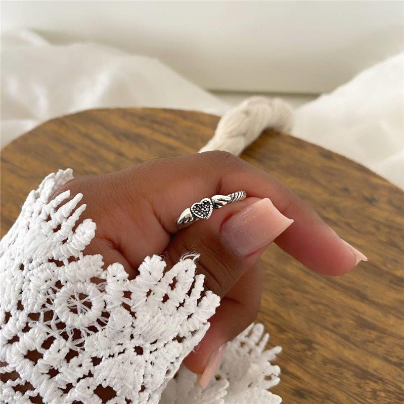 Anel Prata 925 legítima em bali. Aro torcido com coração cravejado com pedra zircônia e asas. Aro aberto.Medida