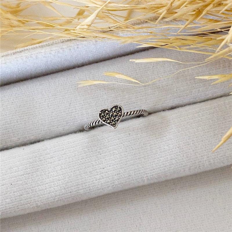 Anel Prata 925 Legitima em bali. Aro torcido com coração cravejado na pedra marcassita.Medidas: