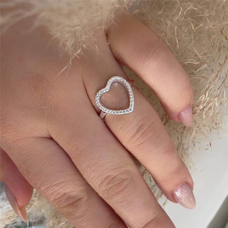 Anel Prata 925 legítima. Coração vazado com zircônia cravejada em todo coração.Medidas