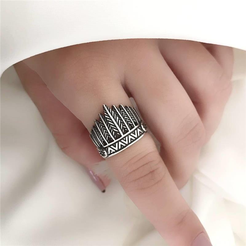 Anel Prata 925 legítima em bali. Anel de coroa cocar de índio, trabalhado em detalhes na base com riscos geométrico e penas de tamanhos decescentes do centro para as pontas.Medidas