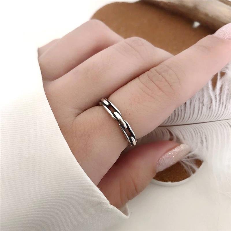 Anel Prata 925 legítima em bali. Dois terços do aro trabalhado com elo ligados formando uma corrente.Medidas