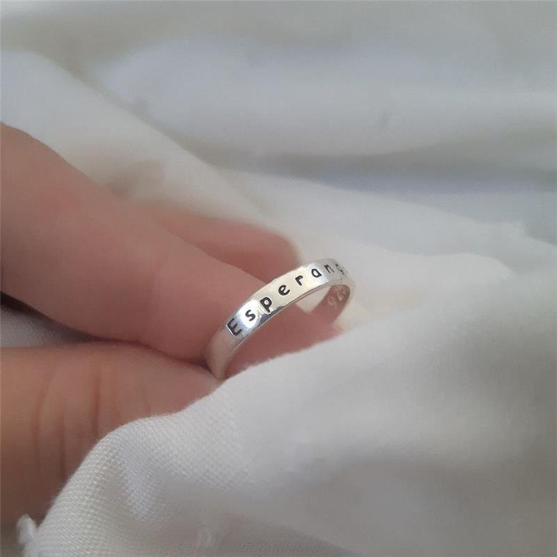 Anel Prata 925 legítima em prata branca. Estilo aliança escrito esperança em baixo relevo.Medidas: