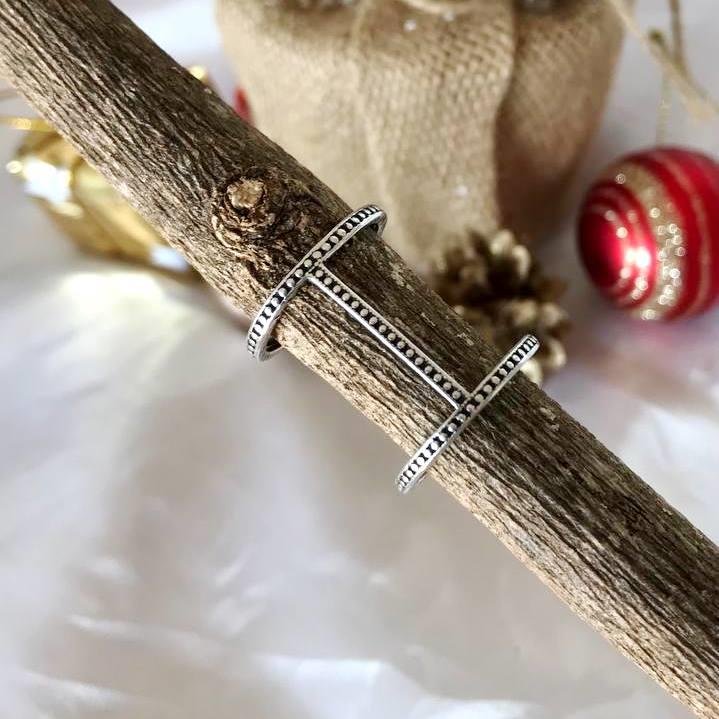 ANEL PRATA 925 GEOMÉTRICO PONTILHADO LONGO
