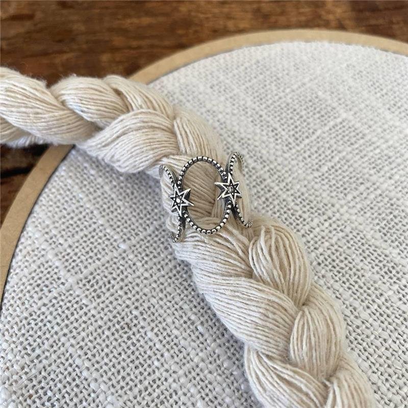 Anel Prata 925 legítima em bali. Linhas finas trabalhadas com riscos cruzadas em formato oval com duas estrelas de 6 pontas cravejadas com zircônia localizada no cruzamento das linhas.Medidas