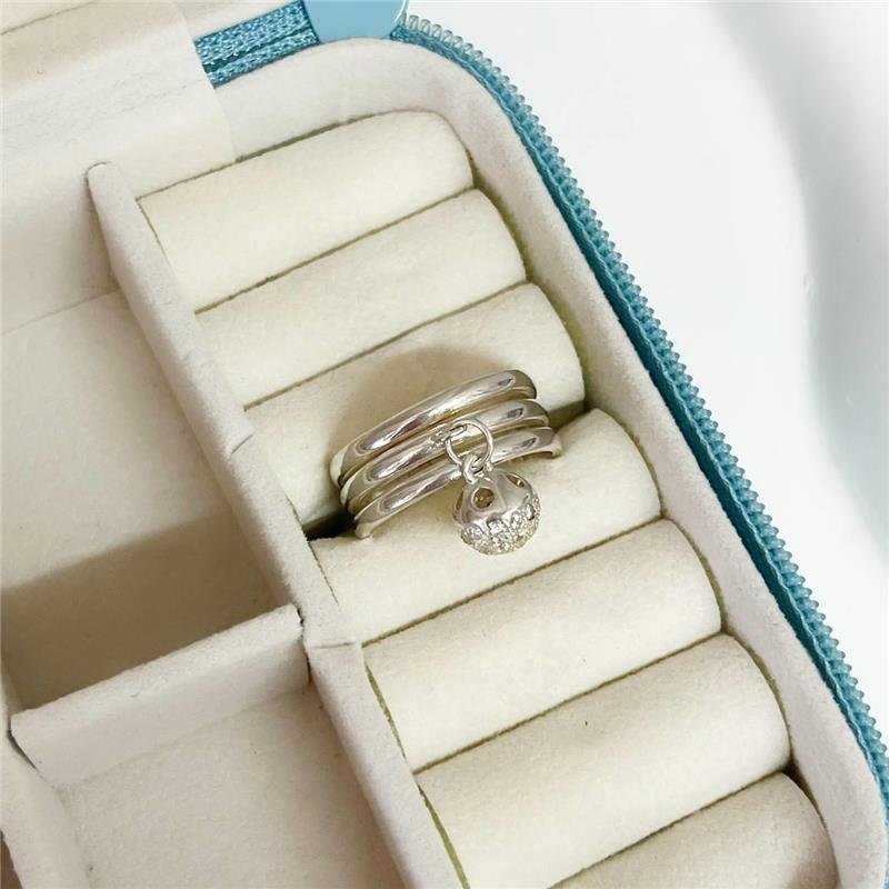 Anel em prata 925 com linhas separadas e pingente pendurado (bolinha metade cravejado com zircônias e metade com detalhes vazado).Medidas: