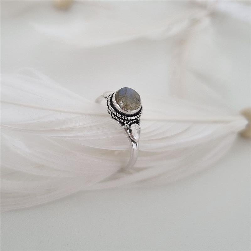 Anel Prata 925 legítima em bali. Pedra Natural formato redonda nas variações Quartzo Rosa, Pérola, Ametista, Pedra da Lua e Labradorita, trabalhado em volta da pedra com fio estilo corda, e gota invertida nas laterais sobre o aro.Medidas