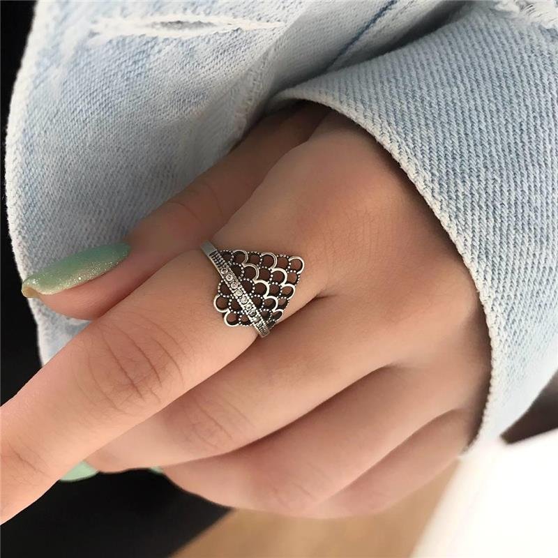 Anel Prata 925 legítima em bali. Pirâmide formada acima do aro com meio círculos vazados um sobre o outro, formando uma espécie de babados, alguns meio círculos lisos e trabalhados. Alguns babados também an parte inferior e aro entre eles trabalhado e cravejado com pedra zircônia.