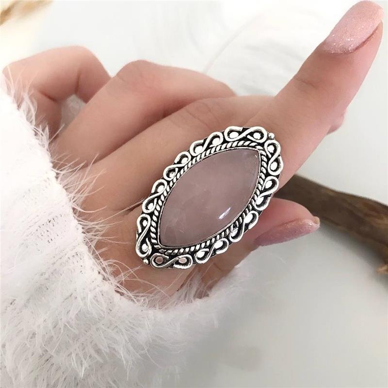 ANEL PRATA 925 QUARTZO ROSA AMENDOADO