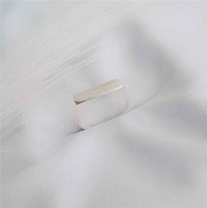 Anel Prata 925 legítima com formato retangular na parte superior, onde pode ser gravado pequenos nomes ou datas.Medidas