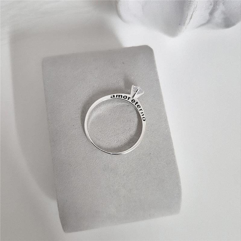 Anel prata 925 legítimo. Solitário zirconia alta com escrita " AMOR ETERNO" no aro, em cima e embaixo.Medidas: