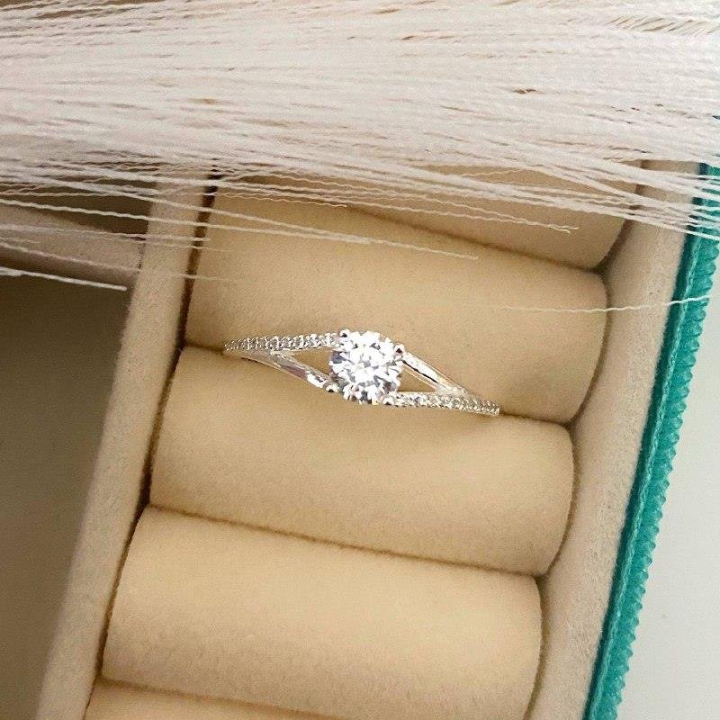 Anel Prata 925 Solitário 2 Linhas Cravejadas com zirconias e 2 Lisas.Medias: