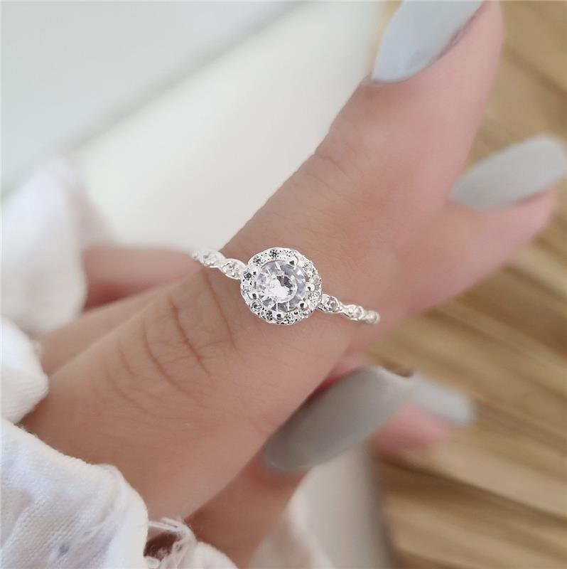 Anel Prata 925 legitima. Solitário pedra zircônia no centro e contorno cravejado, laterias do alho trabalhado em formato de navete e cravejado com zircônia.Medidas: