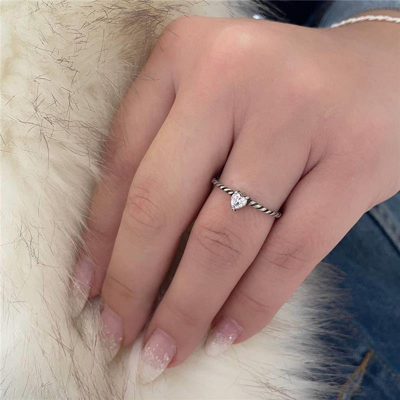 Anel prata bali solitário com zircônia formato de coração com aro torcidinho. Confeccionado em Prata 925.Medidas: