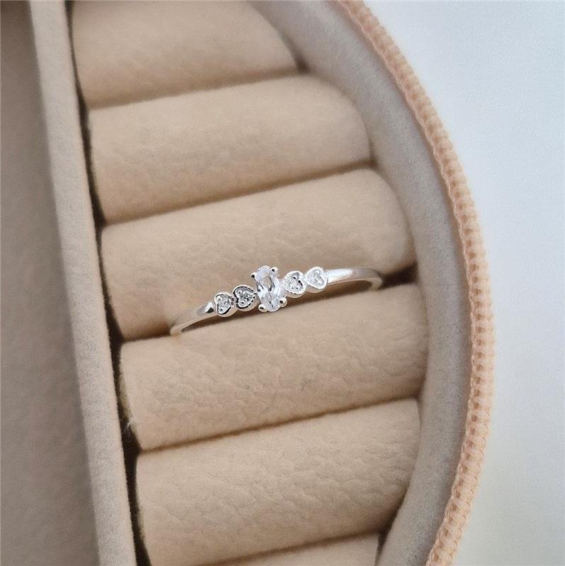 Anel Prata 925 Solitário Oval com corações deitados.Medidas: