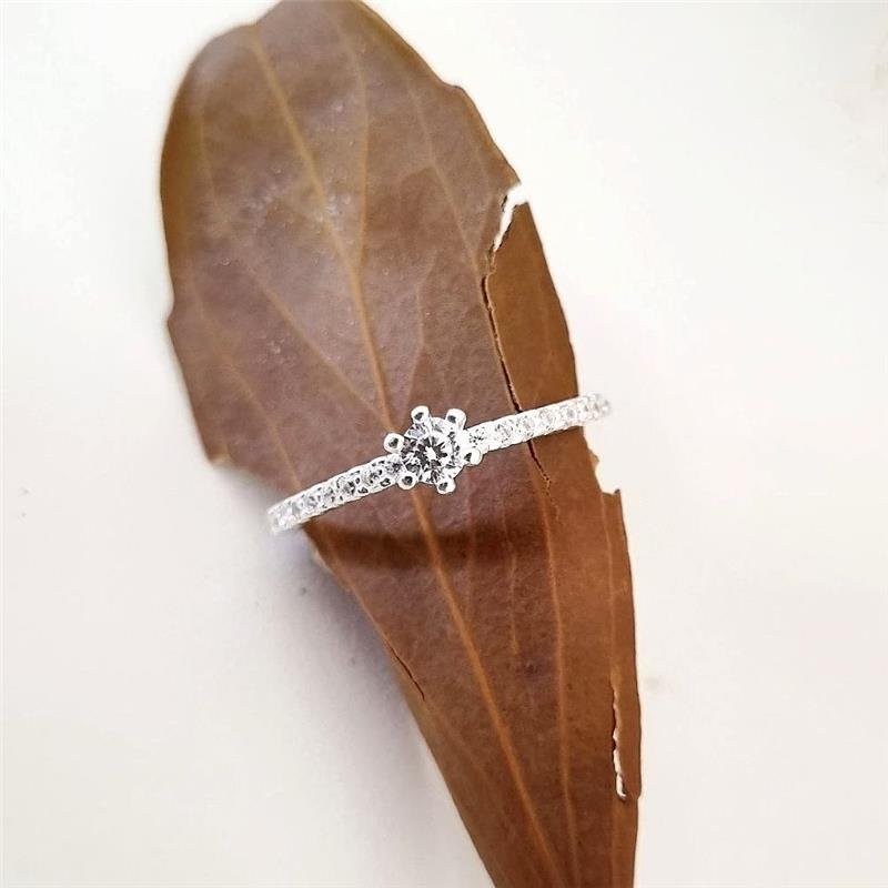 Anel Prata 925 legítima. Solitário com pedra pequena presa por seis garras no centro e laterais cravejadas com pedra zircônia.Medidas