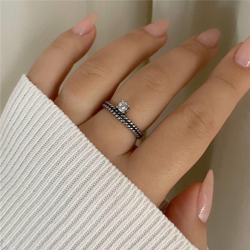 Anel solitário prata bali aro duplo corda. Zirconia na parte externa do aro. Confeccionado em Prata 925.Medidas: