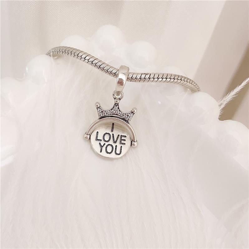 Berloque na prata bali coroa com zircônias e plaquinha giratória lisa escrito "I LOVE YOU". Confeccionado em Prata 925.Medidas: