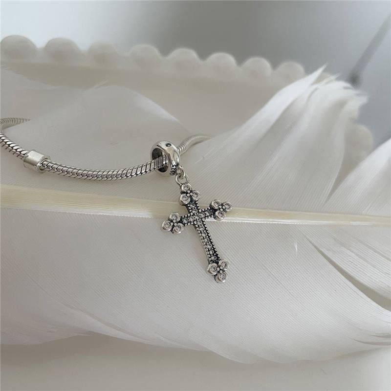 Berloque Prata 925 legítima em bali. Cruz cravejada com zircônia e borda trabalhadas com pequenas bolinhas, pontas com três bolinhas cravejadas com zircônia. Berloque pendurado com base lisa abaulada.Medidas: