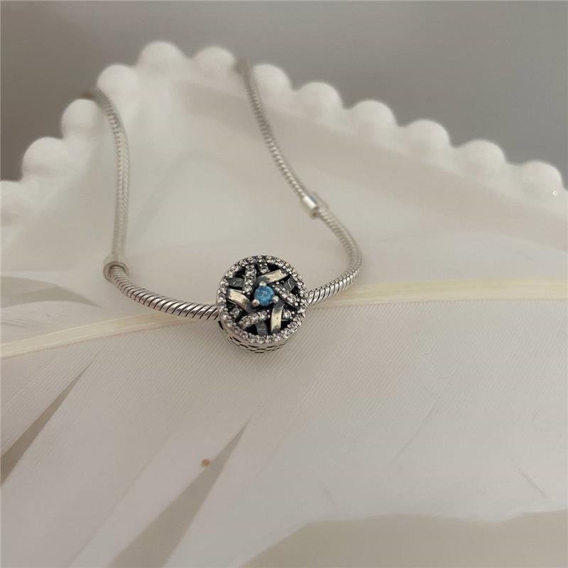 Berloque na prata bali murano redondo linhas entrelaçadas cravejadas com zircônia e corações vazados na lateral lisa. Zircônia azul no centro do berloque. Confeccionado em Prata 925.Medidas: