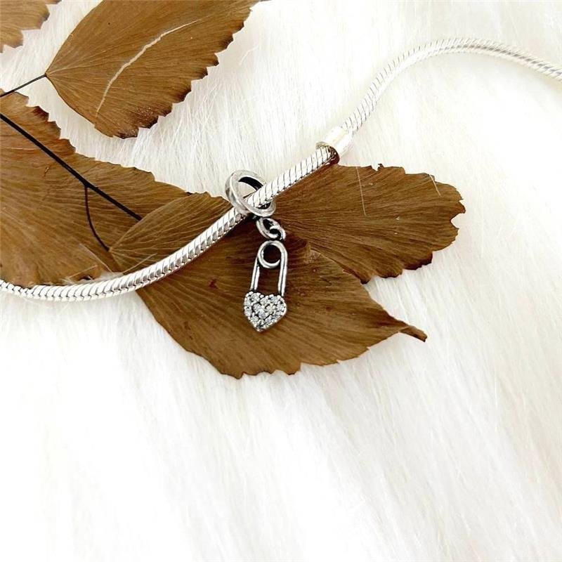 Berloque Prata 925 legítima em bali. Berloque alfinete coração cravejado na ponta com zircônia.*Foto com demais produtos apenas como sugestão do uso de peças para compor mix.