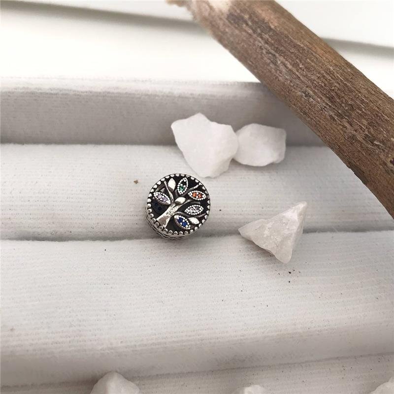 Berloque Prata 925 legítima em bali. Murano redondo com árvore da vida, fundo vazado e folhas cravejadas com micro zircônias coloridas, nas cores lilás, verde laranja rosa e azul. Lateral vazada varios buraquinhos em formato de pequenos corações.Medidas