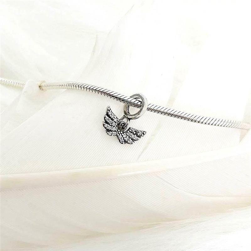 Berloque Prata 925 legítima em bali. Asa cravejada. Berloque pendurado com base cravejada em pedra zircônia.*Foto com demais produtos apenas como sugestão do uso de peças para compor mix.