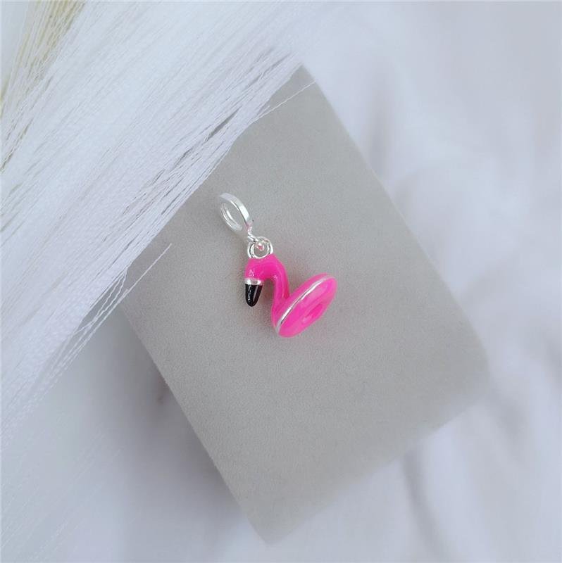 Berloque Prata 925 legítima delicadamente esculpido, modelando um formato de bóia de flamingo, realçada por um acabamento de resina rosa neon, que remete a cor e cara do verão!Compatível em Vivara e Pandora.