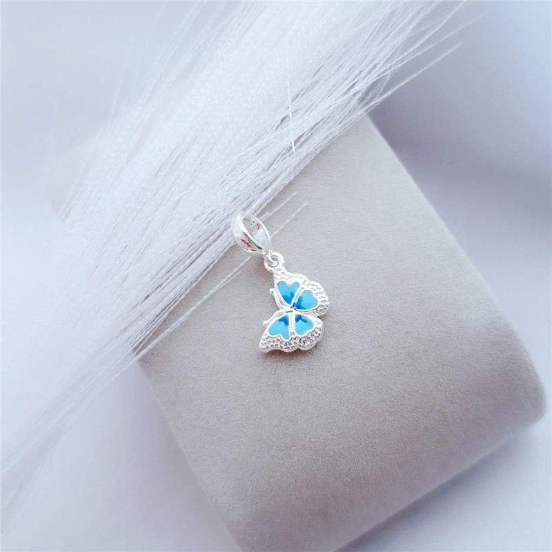 Berloque Prata 925 legítima em bali. Berolque Borboleta Azul . Base pendurada abaulada.Medidas