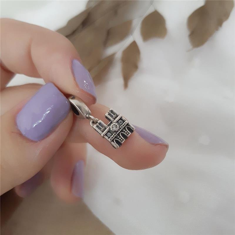 Berloque Prata 925 legítima em bali. Catedral Notre Dame pendurada com zircônias cravejadas no meio, base em formato de alfinete de mapa com um pequeno coração em baixo relevo de cada lado.Medidas: