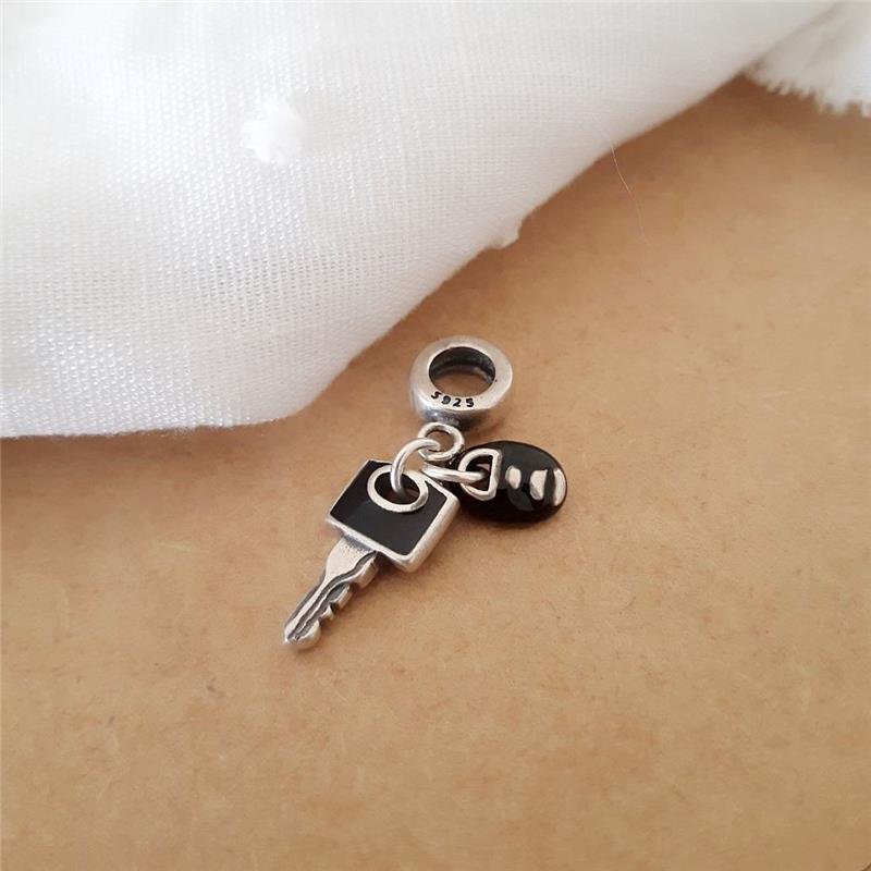 Berloque Prata 925 em bali. Chave de automóvel elegante, com controle remoto e esmalte preto. Um acessório que combina funcionalidade com estilo, oferecendo um toque sofisticado ao seu dia a dia automobilístico.Medidas: