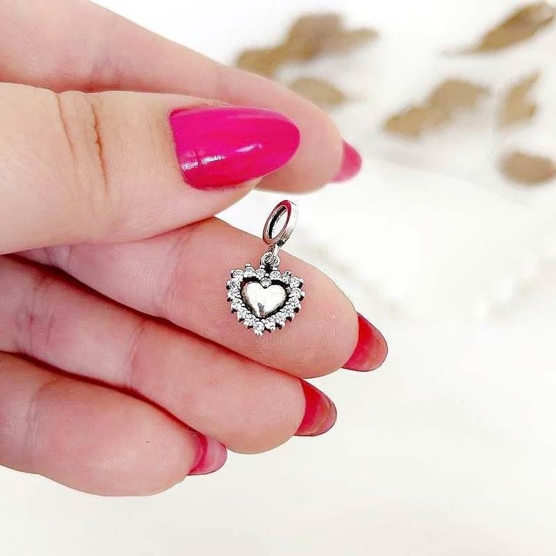 Berloque Prata 925 legítima em bali. Coração com centro liso e linha de contorno toda cravejada em pedra zircônia. Pendurado em base lisa e abaulada. Compatível com pulseiras vivara e Pandora.*Foto com demais produtos apenas como sugestão do uso de peças para compor mix.