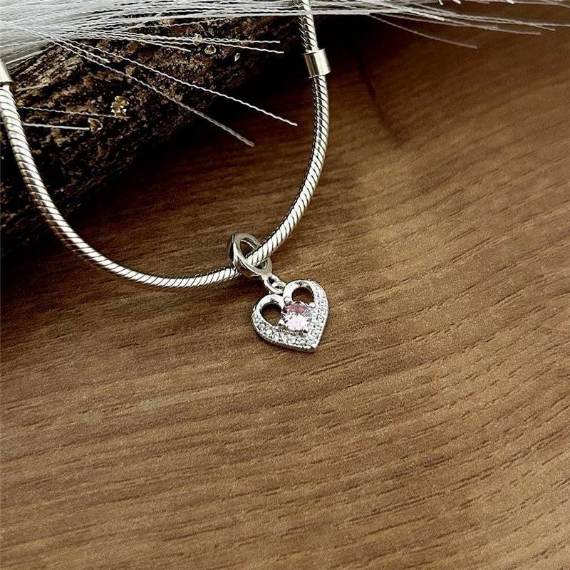 Berloque Prata 925 legítima em bali. Coração cravejado com zircônia rosa no centro. Berloque pendurado com base cravejada em pedra zircônia.*Foto com demais produtos apenas como sugestão do uso de peças para compor mix.