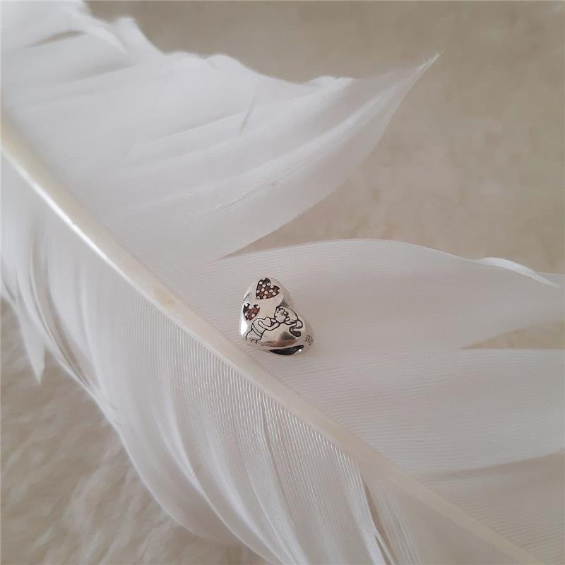 Berloque Prata 925 legítima em bali. Coração murano liso com gestante desenhada e dois corações cravejado ao lado com zircônia laranja.Medidas: