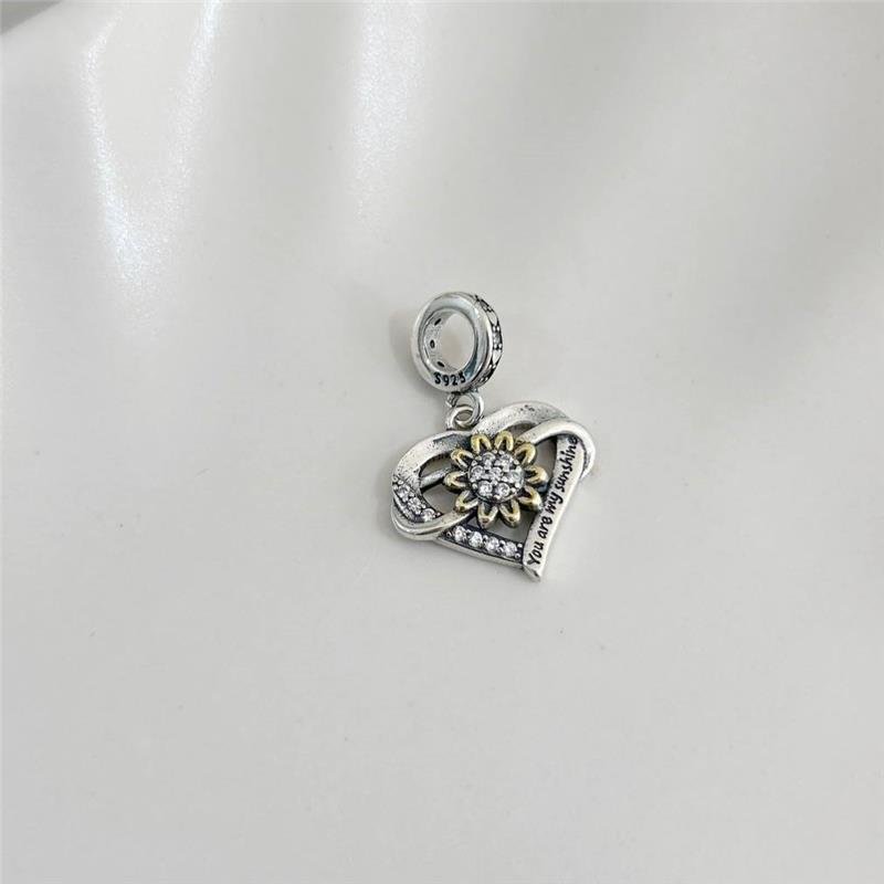 Berloque Prata 925 Coração cravejado, escrito:"you are my sunshine", com infinito e girassol no meio.Medidas: