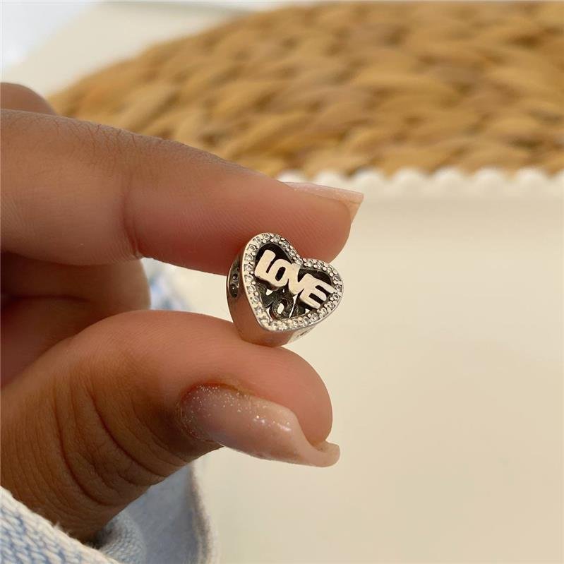 Berloque Prata 925 legítima em bali. Murano coração vazado com bordar cravejadas toda em pedra zircônia e no mei da peça escrito palavra 'LOVE' que significa 'amor' em inglês. Laterais do murâno lisa.Medidas