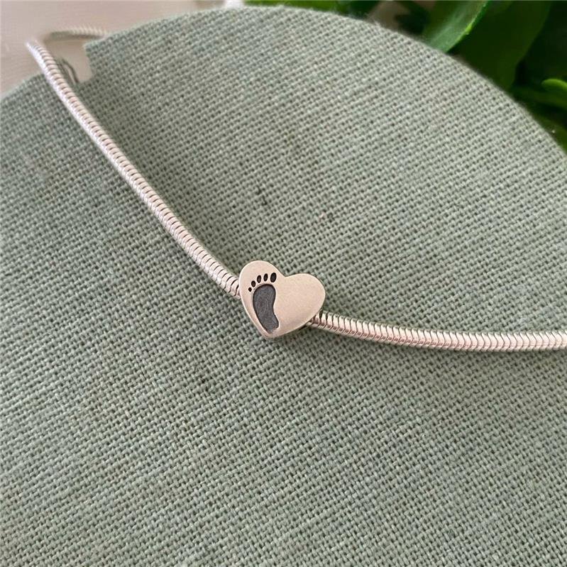 Berloque Prata 925 legítima em bali. Murano em formato de coração estilo quadrado com desenho de um pézinho em um lado em baixo relevo escurecido. Duas faces com a mesma caracteristicas.Medidas