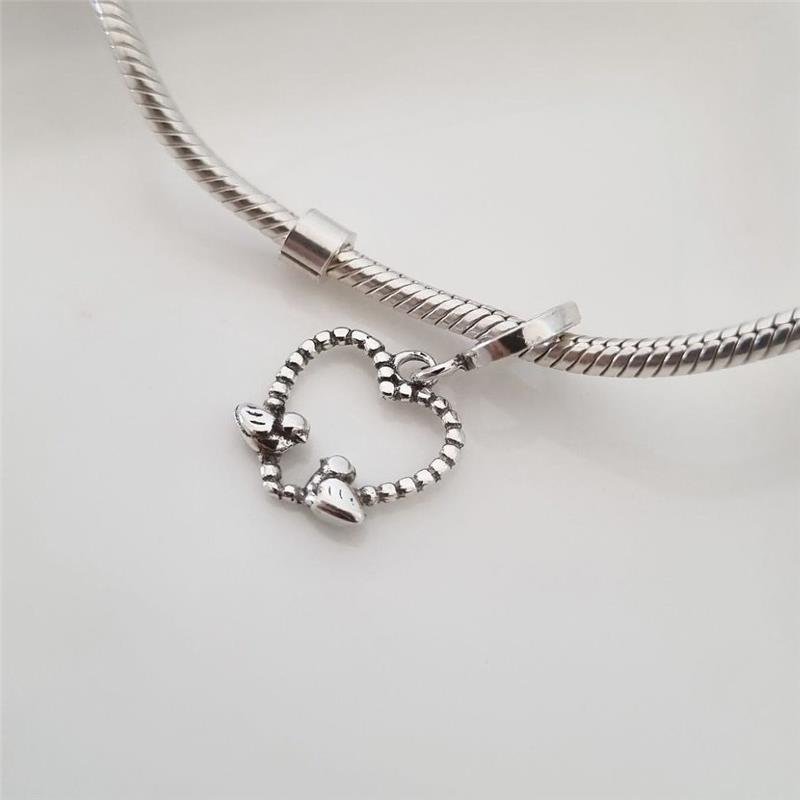 Berloque Prata 925 legítima em bali. Coração formado por bolinhas, fundo vazado com dois pombinhos frete a frente. Base fina e lisa. Compatível com pulseira Vivara e Pandora.Medidas