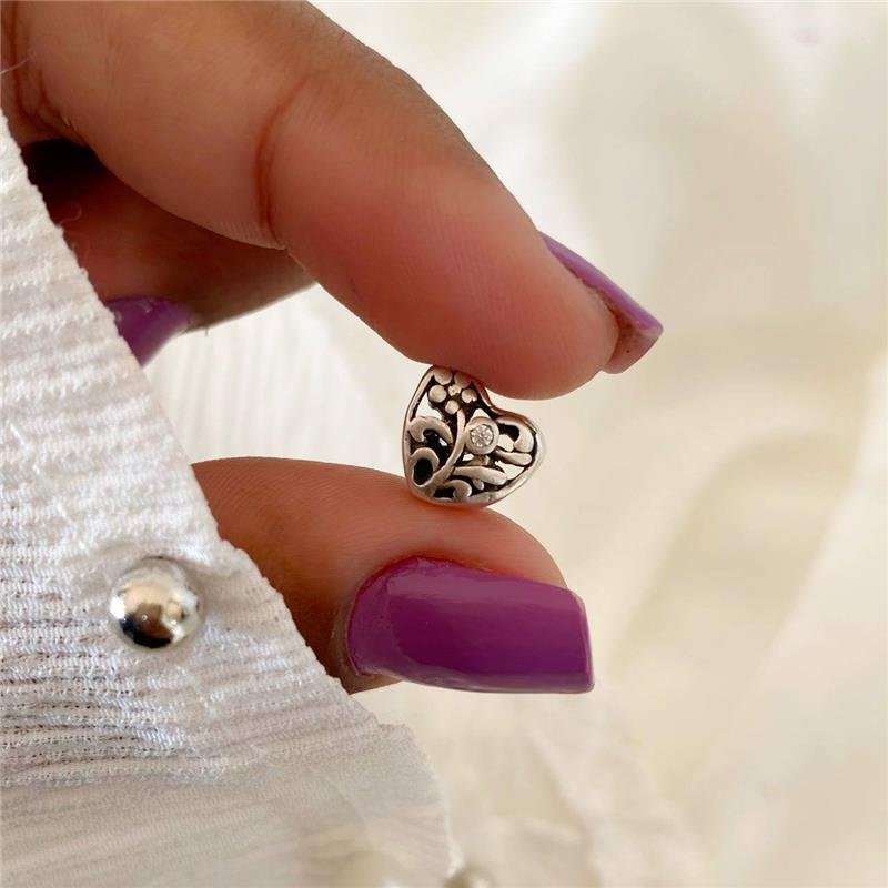 Berloque Prata 925 legítima em bali. Murano coração com interior trabalhado e flor, fundo vazado e uma pedra de zircônia no ramo.Medidas