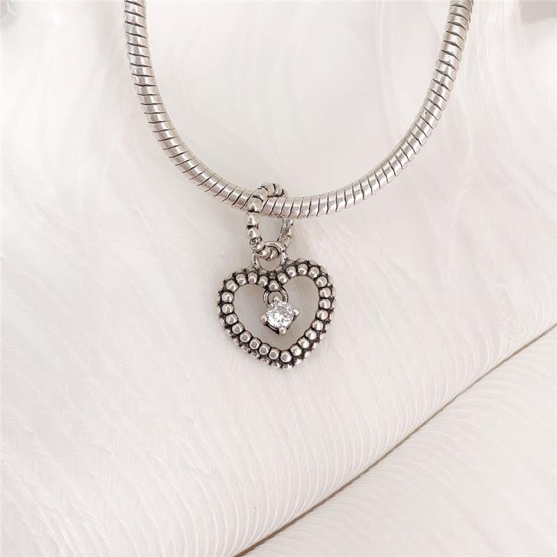 Berloque na prata bali coração trabalhado com bolinhas vazado pendurado com zircônia no centro pendurada. Confeccionado em Prata 925.Medidas: