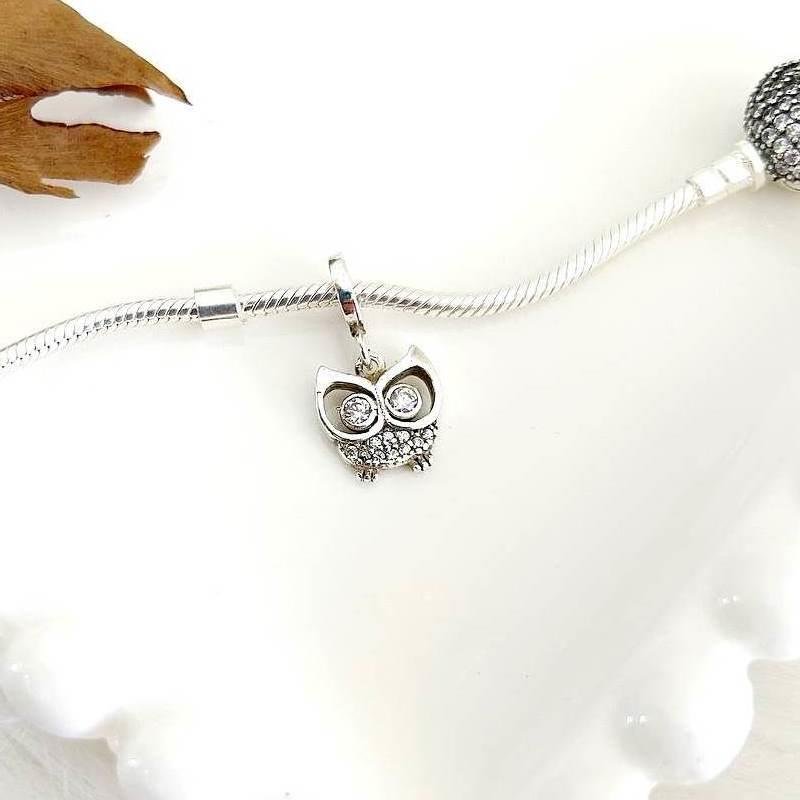 Berloque Prata 925 legítima. Celebre a sabedoria com nosso berloque encantador de coruja, meticulosamente cravejado com deslumbrantes pedras de zircônia. Sua base fina se integra perfeitamente em pulseiras Vivara e Pandora, adicionando um toque de elegância e mistério à sua coleção. Este berloque é mais do que uma joia, é um símbolo brilhante da sua própria intuição e estilo único. Adquira agora e deixe essa coruja iluminar sua jornada com sofisticação. 🦉✨Medidas