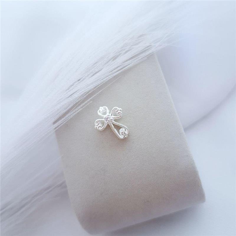 Berloque prata 925 cruz vazada trabalhada, base abaulada com zircônia.Medidas: