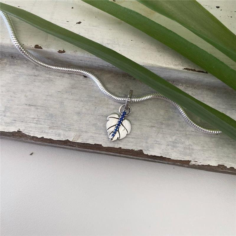 Berloque Prata 925 legitima em bali. Folha com pontas irregulares ,texturizada. Cabo no centro da folha cravejado na pedra zircônia nas seguintes variações : zircônia tradicional ,zircônia azul e zircônia rosa. Pendurado em base texturizada como tronco de árvore e com uma pedra zircônia. Compativel com Pandora e Vivara.Medidas: